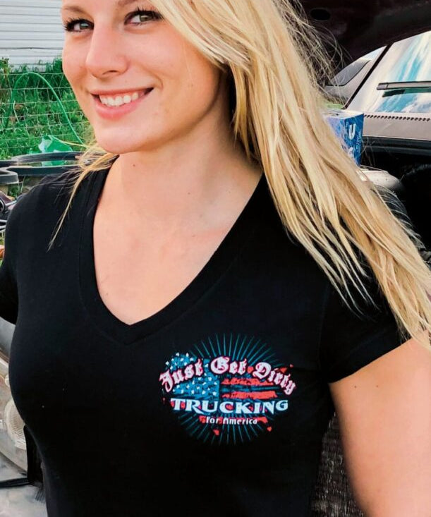 Women's Just Get Dirty Trucking for America V-Neck