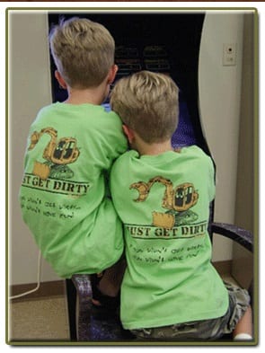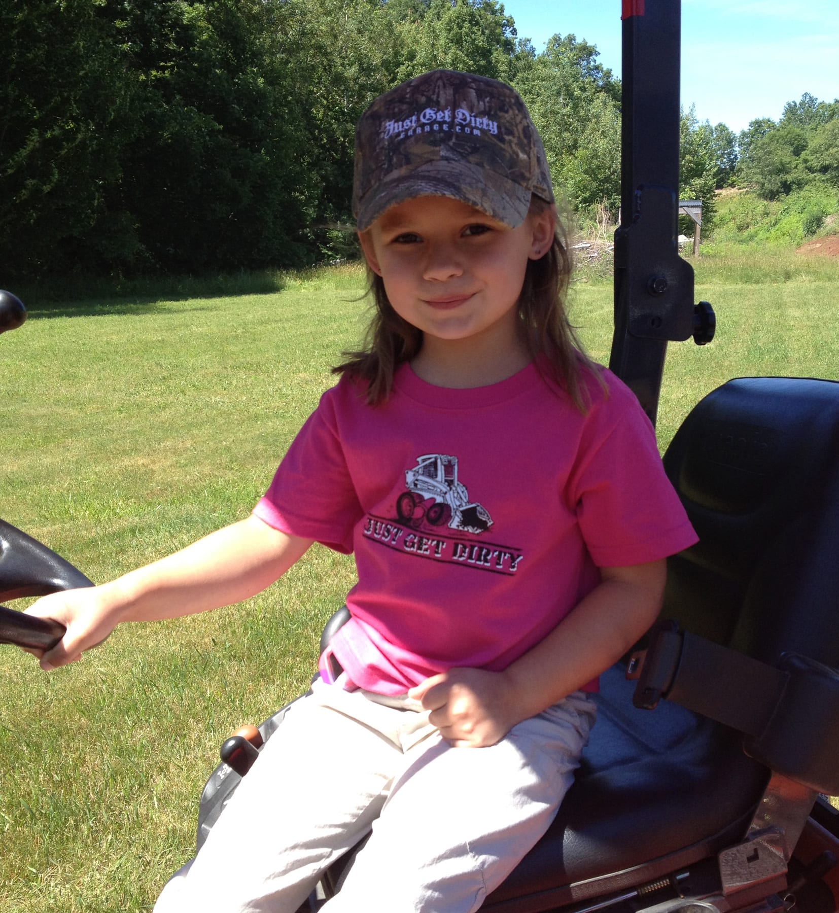 Toddler Just Get Dirty Excavator tee 5oz., 100% preshrunk cotton t-shirt, Just Get Dirty skid steer machine design on front, Just get Dirty excavator design, and our motto: “If you didn’t get dirty…you didn’t have fun!” on back Sizes: 2T, 3T, 4T Colors: Lime Green, Hot Pink