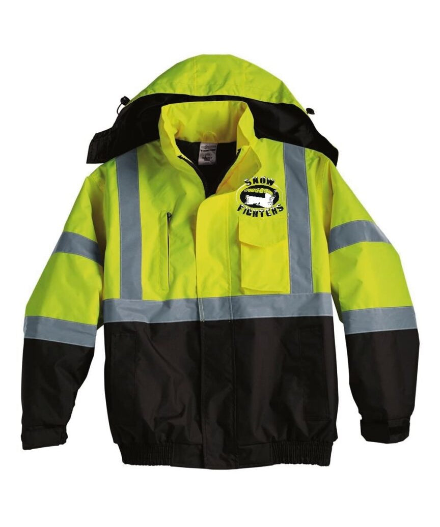 Snow Fighters Mid-Weight Bomber Jacket: Safety Green, Safety Orange